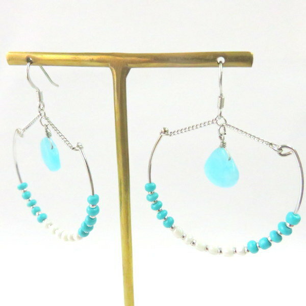 シンプル 着回しオフィス 定番 ロマンティック 石 ストーン ピアス 【ビーズと、大ぶりフープの華やかな存在感で一気に主役に☆