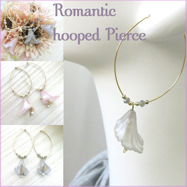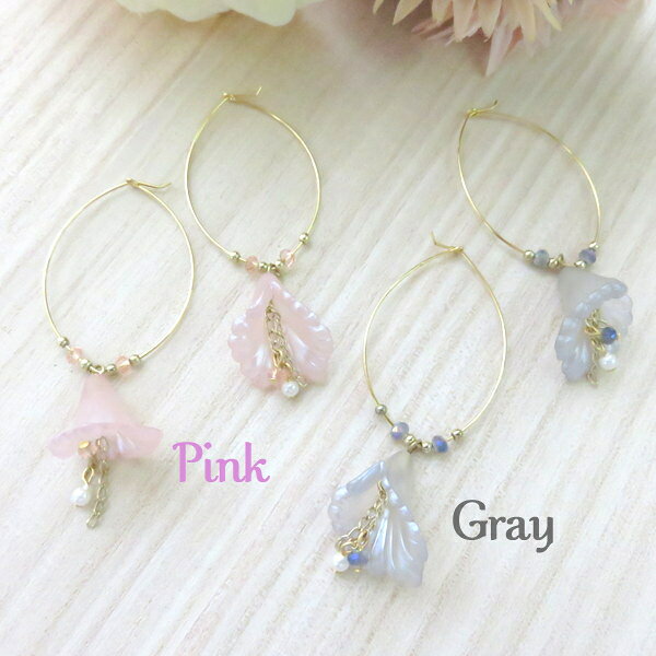 人気の高い好感度モチーフフープに上品にお花が揺れるピアスです。