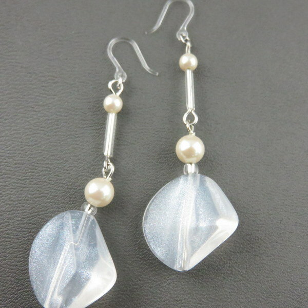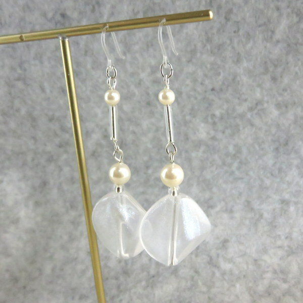 送料無料 レディース アクセサリー デートにもお呼ばれパーティー、結婚式にも ポイント レトロな乳白カラーのアクリルパーツをピアスにしました!流行のパール調ミルキー&小粒パールで大き目なのにやさしい雰囲気。