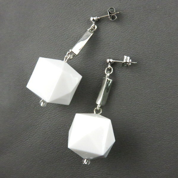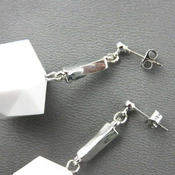 送料無料 レディース アクセサリー お呼ばれパーティー、結婚式にも ポイント レトロな白カラーのアクリルパーツをピアスにしました!流行のミルキー白&メタルバーで大き目なのに上品な雰囲気。